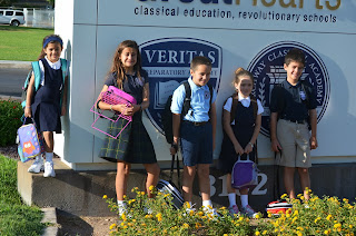 Here is everyone else on their first day of school..even Rachel. This is the first time in 14 years that I haven't had a little friend home with me. I have to say a few hours of quiet everyday has been quite lovely! Everyone is happy with their classes and friends. So we have one high schooler, two middle schoolers, and three elementary kiddos. All the activities come with the start of school make my head spin...another post for those.